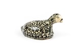 The method used to create the original birds involved creating two equal shaped pinch pots which are then joined together. A traditional, hand-sculpting technique is used to tap and lengthen the shape with a wooden paddle, allowing the bird form to emerge from the clay.