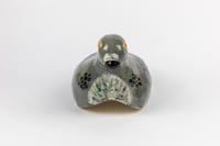 A ridge bottomed bird. Leo has been lovingly created using grogged white clay, decorated with home-made slips and covered in a clear glaze. He has a beautiful painterly feathery chest and a shiny black beak.
